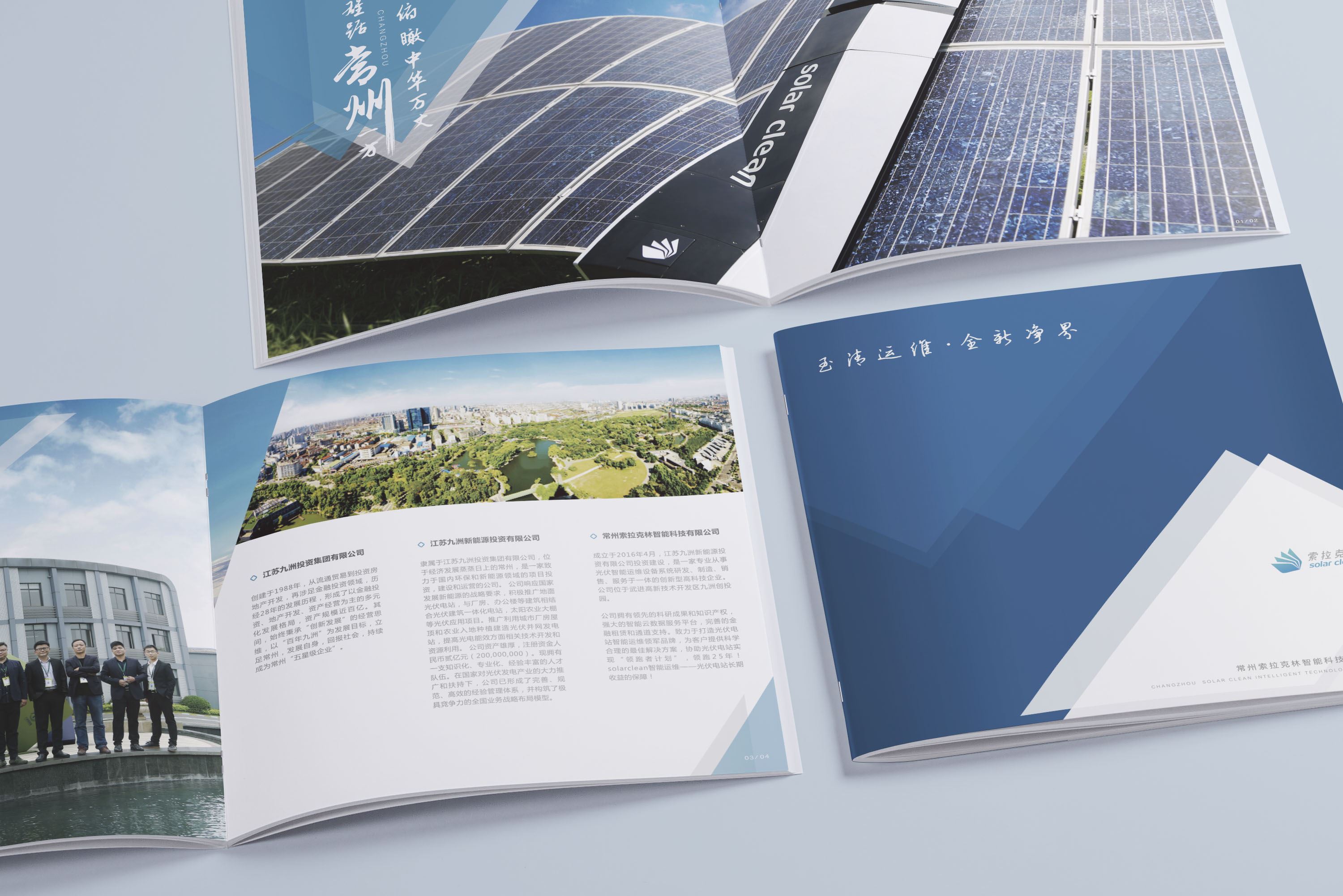 采用代表清潔新能源和藍(lán)色和積極向上的三角形素材來設(shè)計(jì)這款畫冊(cè)