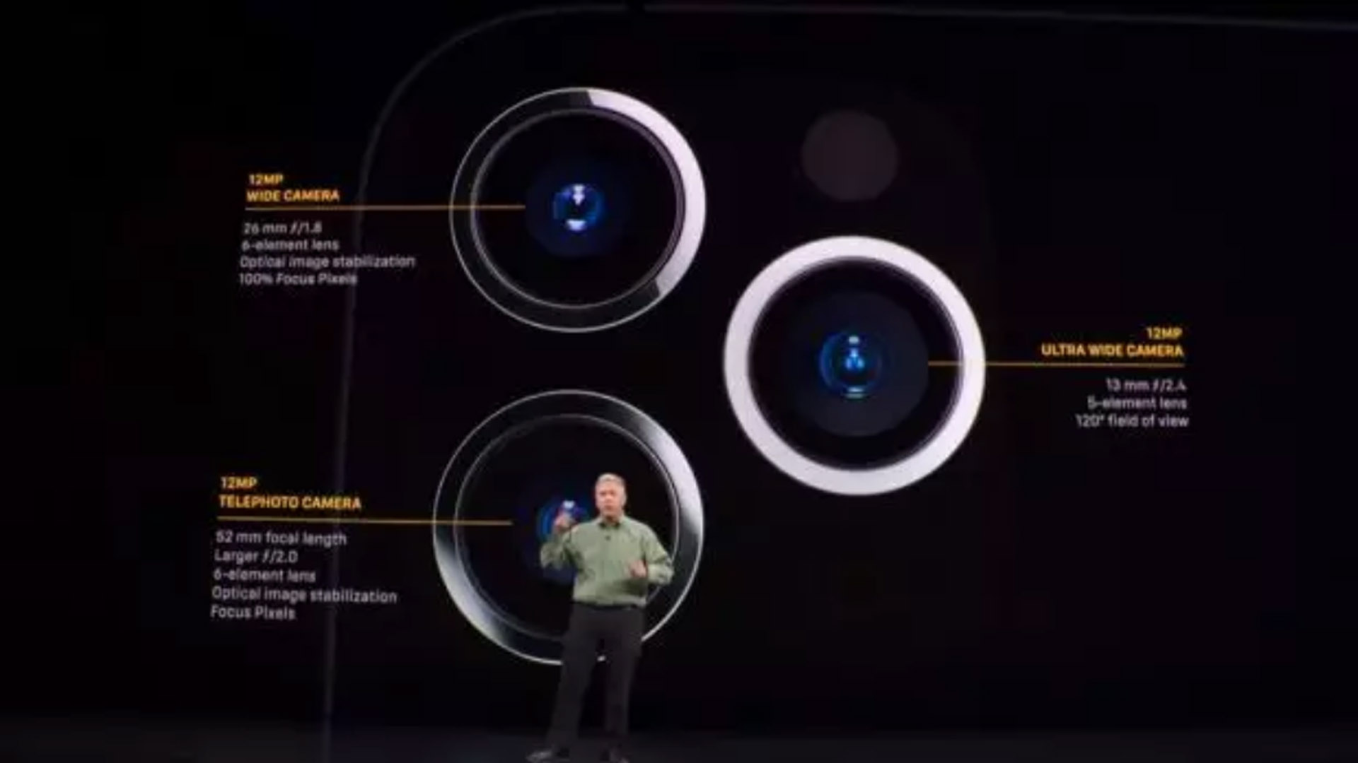 3個(gè)攝像頭,一顆1200萬像素廣角鏡頭、一顆為1200萬像素超廣角鏡頭、最后一顆為1200萬像素長(zhǎng)焦鏡頭,各個(gè)角度都可以拍,細(xì)節(jié)好,小亮點(diǎn):推出新功能可以一秒拍9張照片,然后融合出最好的一張。視頻拍攝方面,提供4K 60fps視頻拍攝能力,號(hào)稱最強(qiáng)。