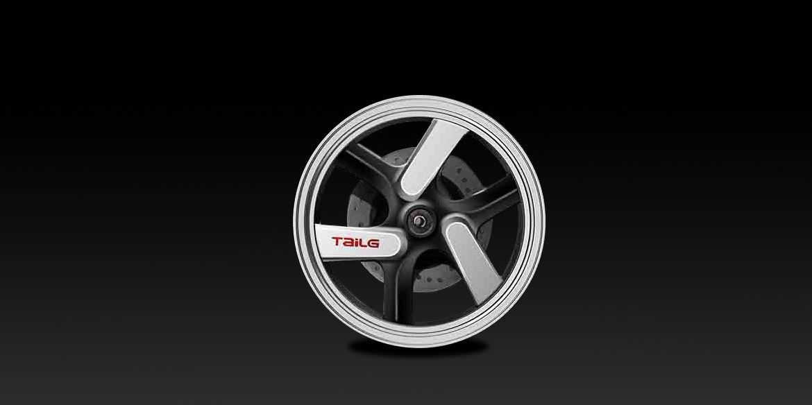 材質(zhì)選用鋁合金,堅(jiān)固又輕盈,黑銀雙色搭配使得工業(yè)設(shè)計(jì)的精髓在車(chē)轂蓋中回環(huán)流轉(zhuǎn)。在三幅旋轉(zhuǎn)的位置一面,放上TaiLG的紅色logo,醒目張揚(yáng)。